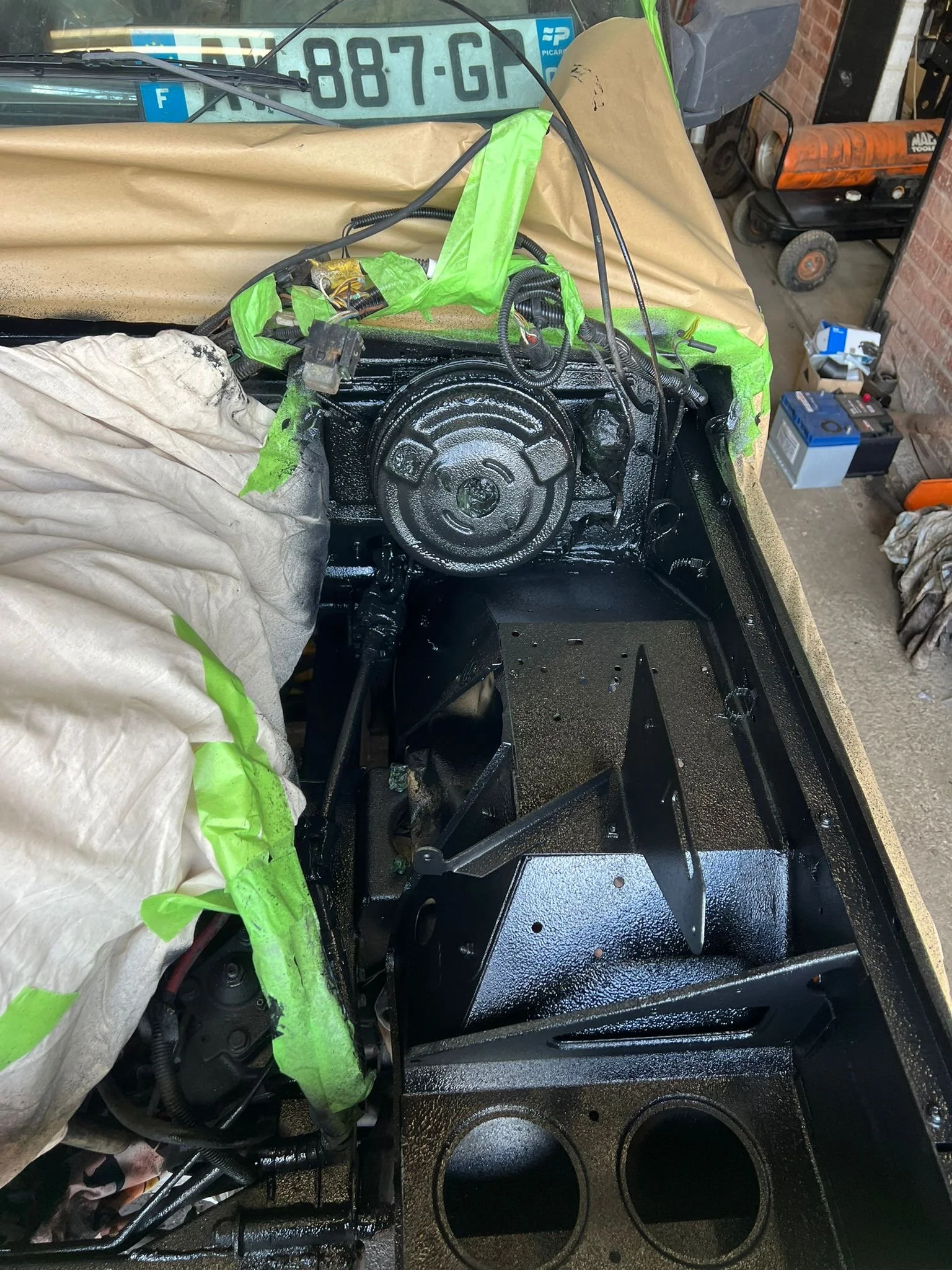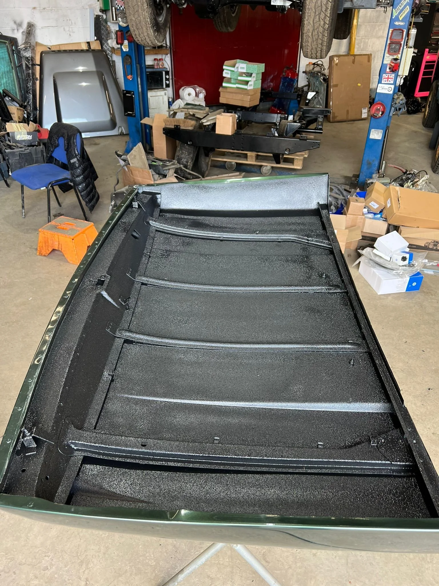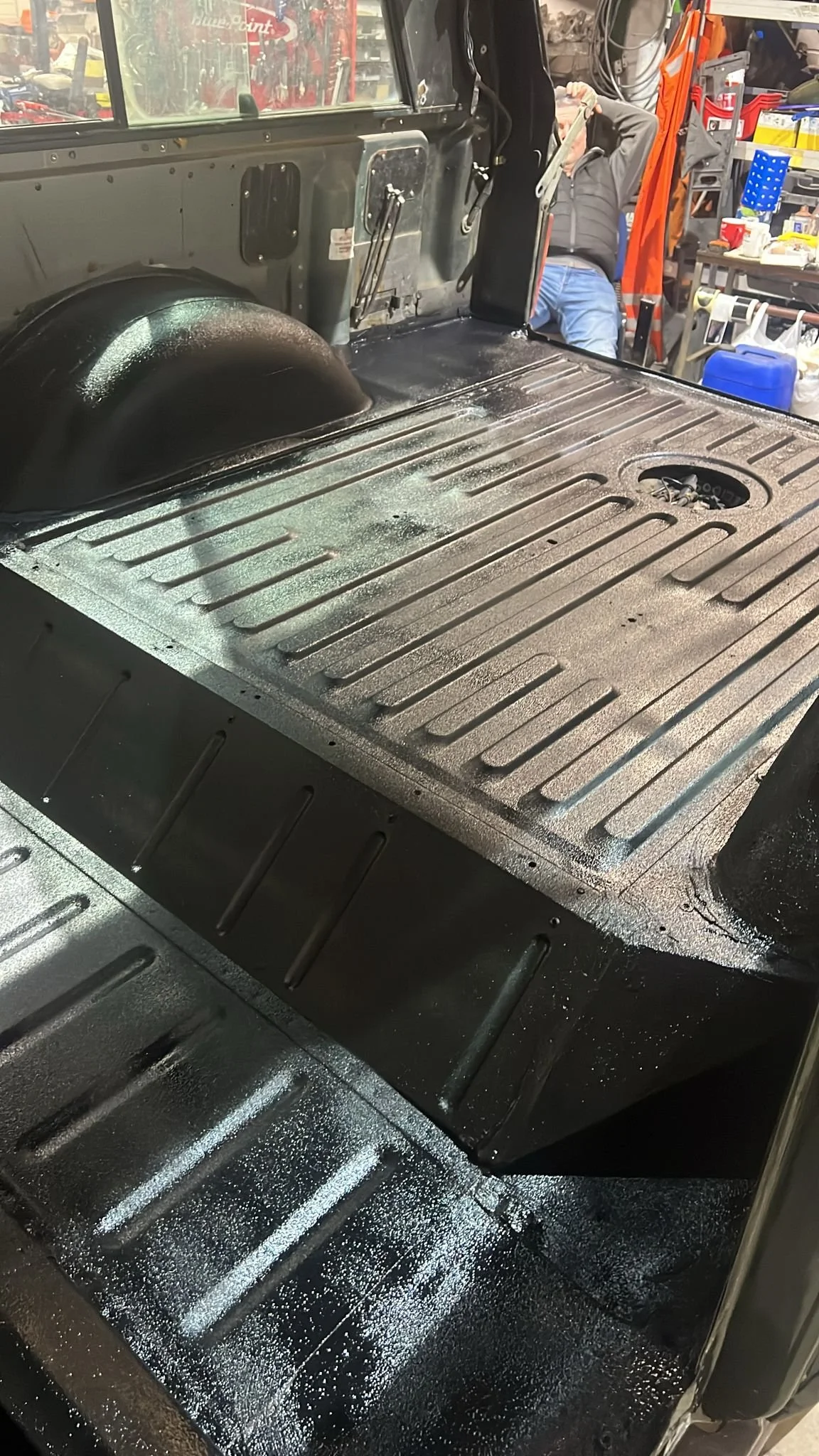 Interior stripped and then coated with black sealant