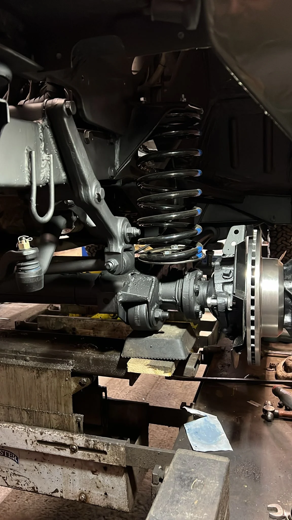 Chassis, axles, and undercarriage cleaned with steel wool, hot-water power washed, and finished with a black protective sealant for protection